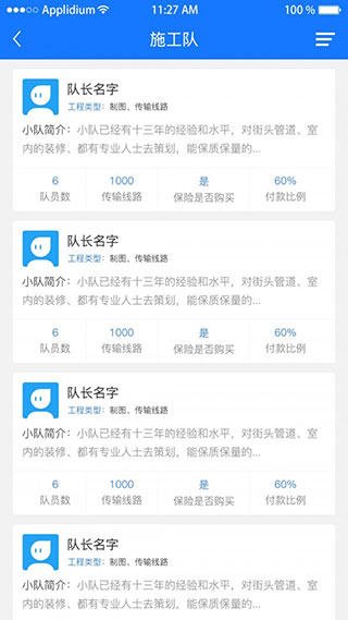 1、查询优秀施工队时,平台提供详细的施工队简介,便于用户快速找到合适的优秀施工队。