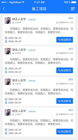 3、点击施工项目,即可清晰查看项目的名称、电话联系方式及各项细节信息