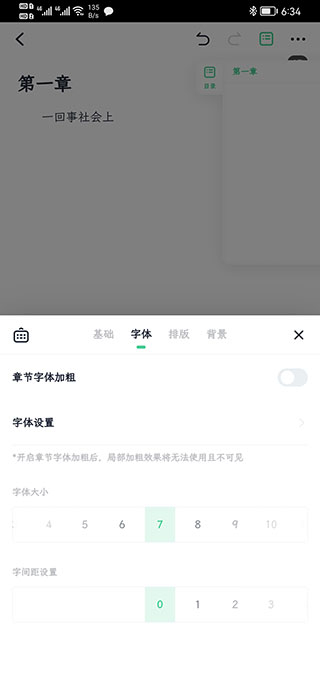 2、在设置菜单里,用户能看到基础、字体、排版、背景之类的选项。找到“字体”选项并点击,即可进入字体设置界面。