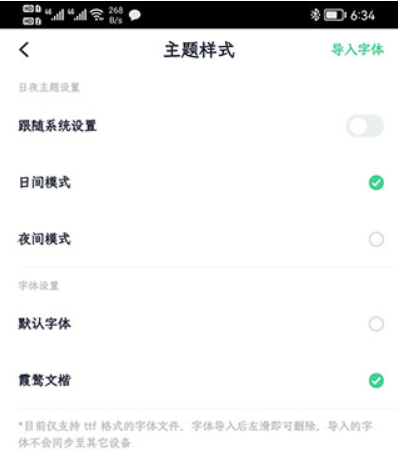 3在字体相关的设置界面右上角,能找到用于添加字体的功能按钮,触发该按钮后会跳转至专门管理字体的页面。