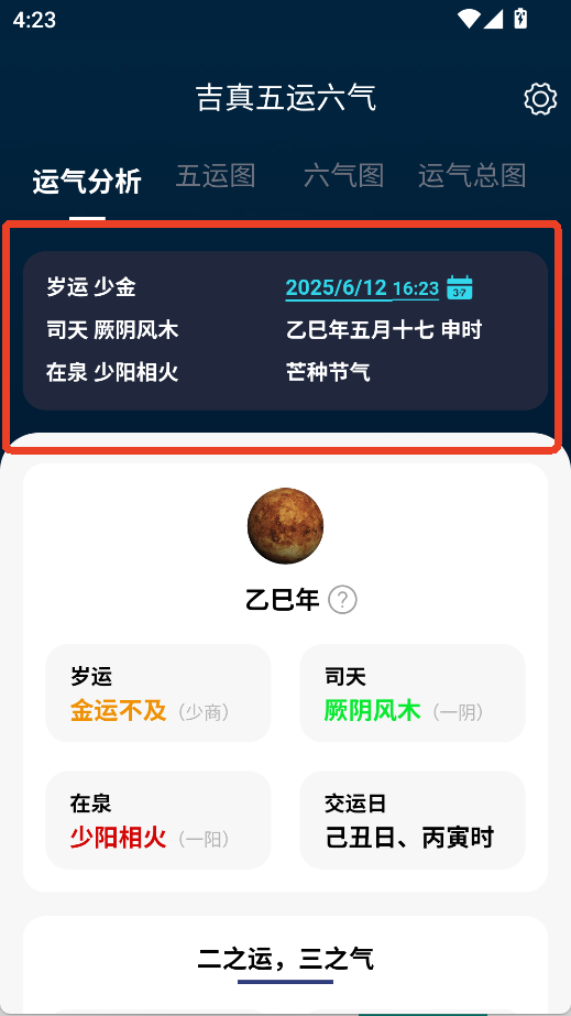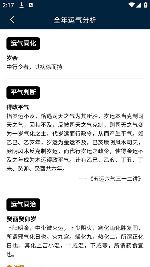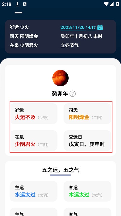 5、用户能够从展示的运势测算结果里获取详尽的五运六气信息。