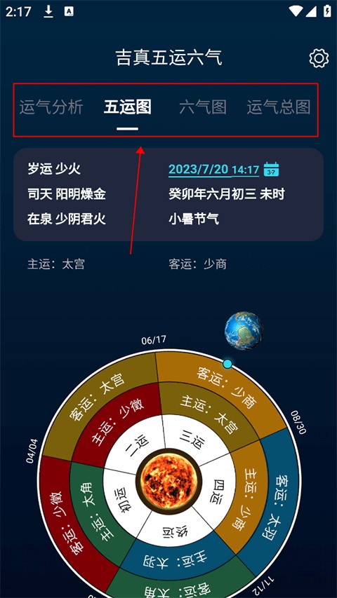 1、用户可以在吉真五运六气里挑选不同的版块来启动测算。
