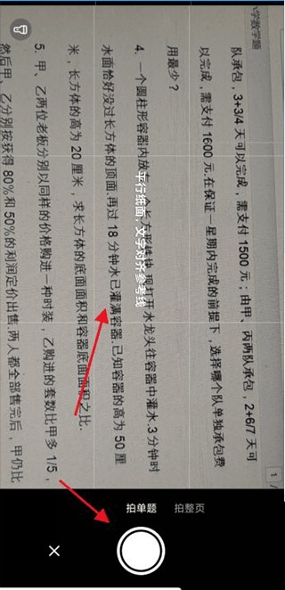 3、接下来用手机摄像头对准题目,要让参考线与纸面文字保持平行,之后点击【拍摄】按钮。