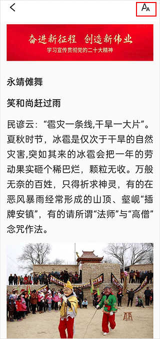 在文章阅读页面,你也能点击右上角的字体按钮来调整相关设置。