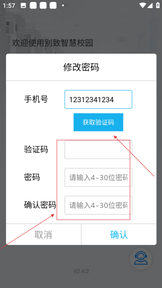 3、点击【获取验证码】按钮,接着依次完成【验证码填写、新密码设置以及确认密码输入】这些操作。