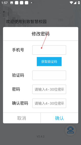 2、进入修改密码页面后,【填写对应的手机号】,以便获取验证码完成验证步骤。