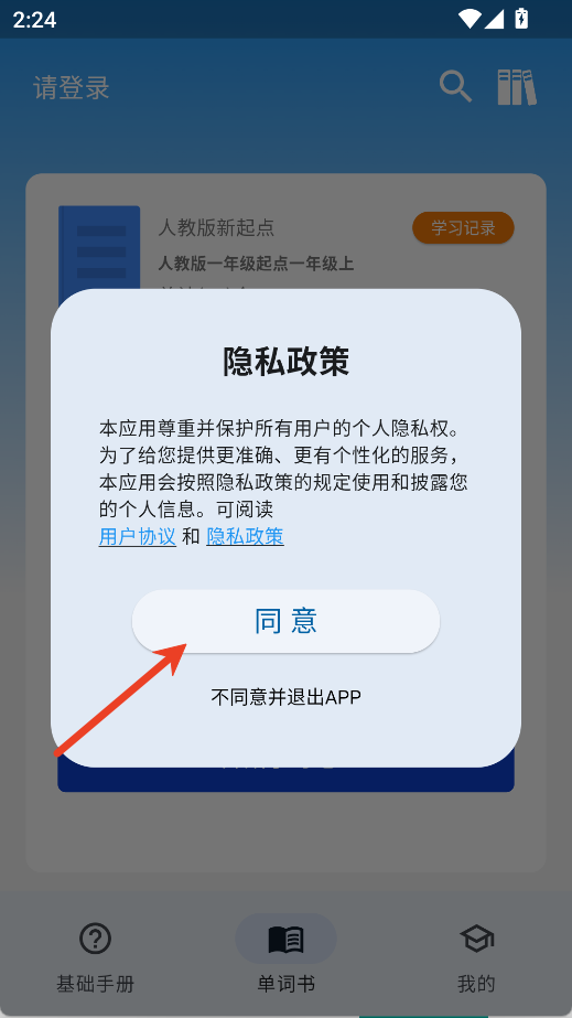 2、进入软件后,同意隐私政策与用户协议以继续使用