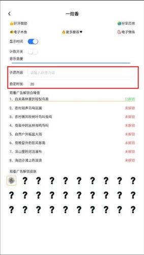 2、在许愿内容与时长中输入愿望的内容与想要许愿的时长。