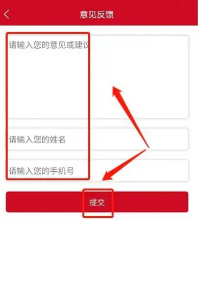 4、进入反馈页面后,填写你想反馈的内容,输入姓名和手机号,然后点击【提交】就完成啦!