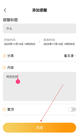 4所有信息填写完毕后,点击界面上的【完成】按钮,就能顺利结束提醒事项的添加流程。