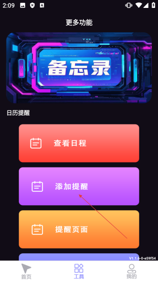 2、进入更多功能界面后,点击【添加提醒】选项,即可进入添加提醒的操作界面。