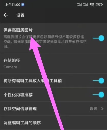 3、进入设置页面后向下滑动,找到【保存高画质图片】这一选项。