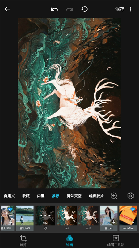 2、自定义滤镜创作:可保存个人调色方案,也支持分享与云同步功能。