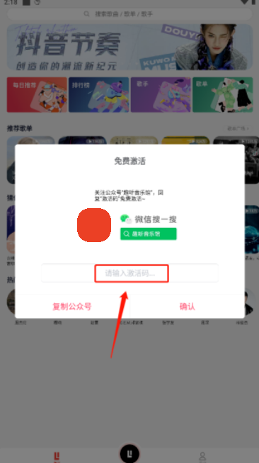 3、把激活码输入到趣听音乐中并点击确认,就能顺利完成登录啦。