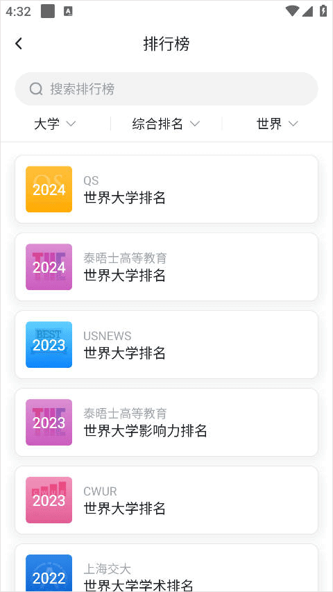 实时同步QS、USNews、THE等权威排名,按多维标准评价高校与专业。