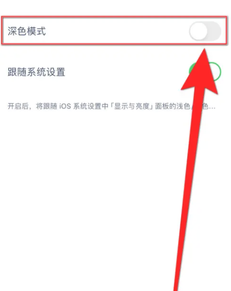 3、在设置列表里找到【深色模式】,点击它后面的圆点;