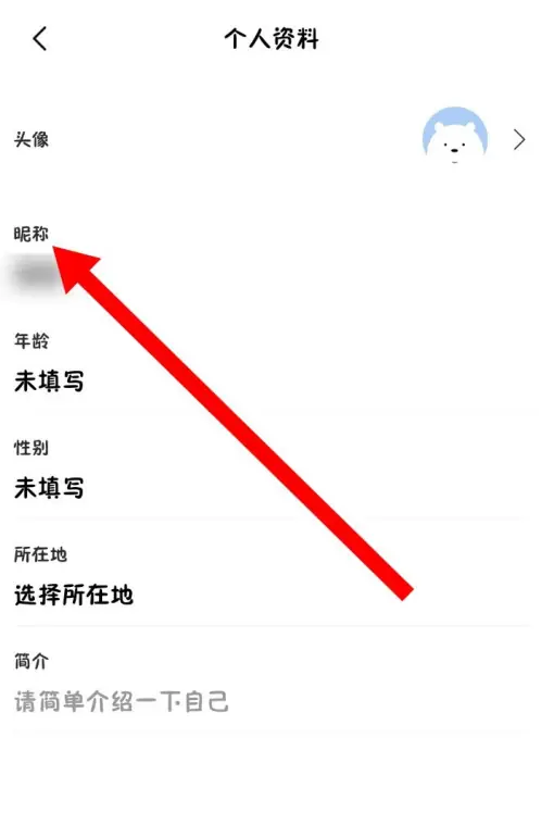 3、进入个人资料页面后,找到“昵称”这一栏,点击该栏就能开展修改操作。