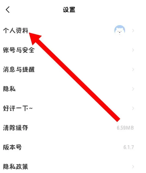 2、进入设置页面后,找到“个人资料”选项,点击该选项即可进入详细资料的管理界面。