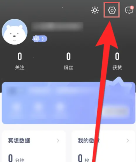 2、在个人中心右上角点击小齿轮【设置图标】;
