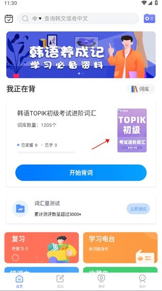 1、我们为用户精心挑选了各类不同的词库,只需点击一个个韩语单词,就能开启你的学习之旅。