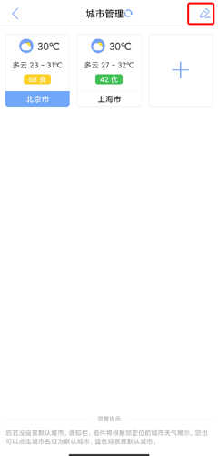 2、进入“城市管理”页面后,点击右上角的“编辑”按钮。