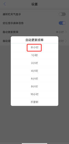 3、把天气自动更新的时间频率调整为“30分钟”这一档。