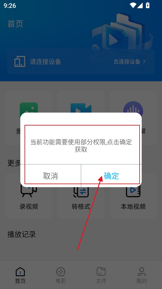 1、首次使用投屏功能时,软件会请求访问手机的相关权限,用户需点击确认以便程序正常运行。