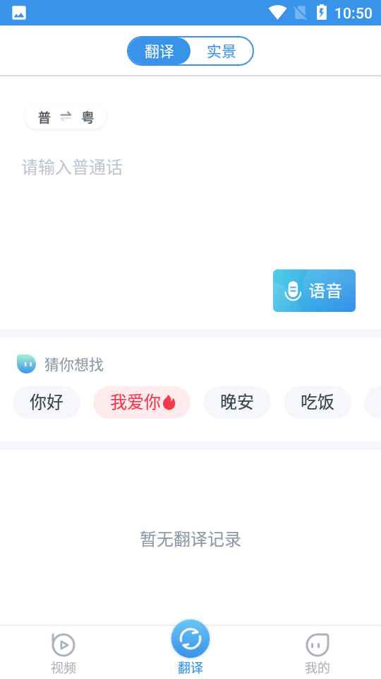 3、【翻译】界面除了具备普通话与粤语之间的基本互译功能外,也提供语音翻译的支持。