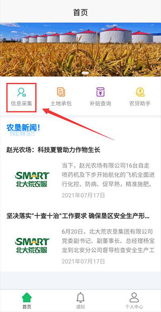 1在该平台下载并安装应用程序后启动,初次使用时需完成注册登录操作,进入应用主界面后,找到并点击首页的信息采集功能键。