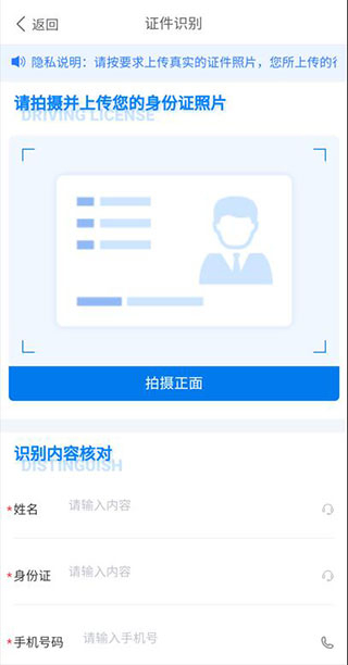 3这时候就正式进入信息采集环节了,我们得先拍摄并上传自己的身份证照片,系统会自动识别出对应的信息。