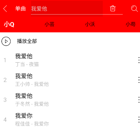 2、用户只药点击右上方的搜索按钮,输入歌曲关键词就能搜索歌曲
