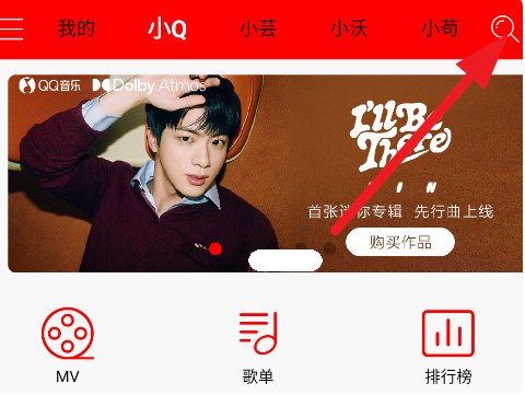 2、可以先选好搜索类型,例如歌曲、歌单或MV,筛选更精准;