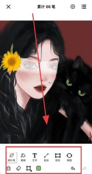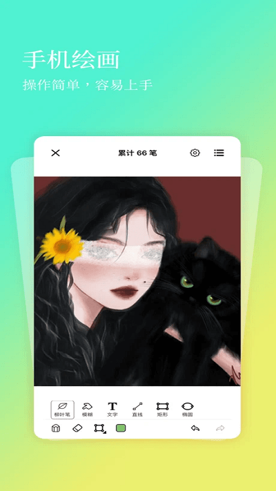 2、绘画界面配备了柳叶笔、模糊工具、文字工具,以及直线、方形、圆形等基础图形选项,无论你是擅长手绘的达人,还是只想随手涂鸦,使用起来都十分顺手。