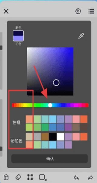 3、调色区设计得特别贴心,不仅有彩虹色带和色块可供选择,还配备了“记忆色”功能——常用的颜色只需一键就能保存,想用的时候再一键调取,完全不用怕记不住配色方案。