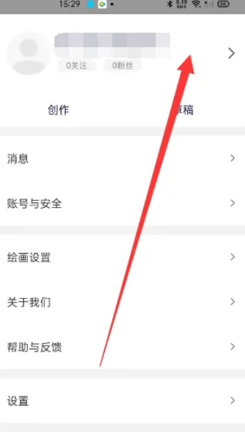 1、打开全民画画后,点击右下角的【我的】按钮,接着进入页面上方的个人资料界面;