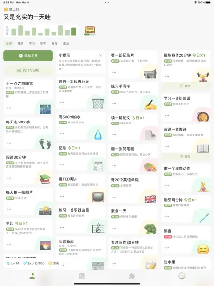 3、协助用户创建运动、阅读、学习、饮食等多类习惯养成任务,从多维度助力用户提升生活与工作效率。