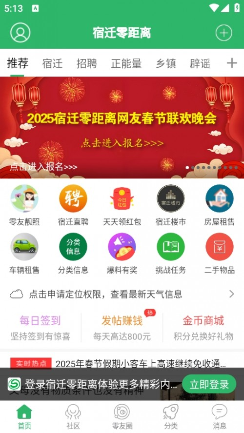 宿迁零距离作为宿迁市极具影响力的本地生活社区平台,融合了吃喝玩乐、衣食住行、新闻资讯、交友社交与便民服务等多元内容,致力于为宿迁市民构建一个真实、丰富且充满暖意的互动空间。在这里,用户能够随时掌握本地热点资讯,分享个人生活动态,参与同城交友活动,加入各类兴趣圈子,还能报名线下聚会,让日常生活更添精彩,也让这座城市更具温情。平台支持本地社交、视频分享、话题互动等实用功能,力求成为真正“宿迁人都在使用”的综合生活服务平台。