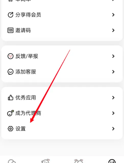 1、首先启动TalkAI练口语软件,并进入个人中心页面,点击进入设置选项以调整系统参数。