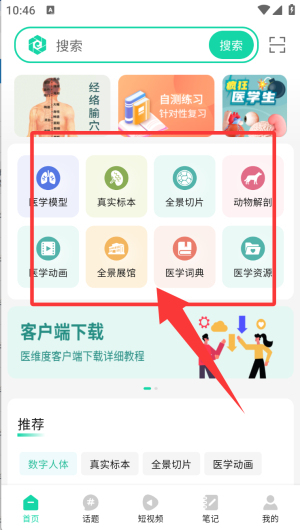 4该软件为用户提供了多元化的学习途径,除了借助3D模型进行学习外,还包含医学视频、医学科普动画等多种形式,旨在为用户打造更丰富的学习体验。