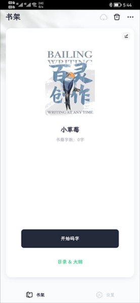 3、新书籍创建完成后,首页会显示刚创建好的书籍,此时就可以着手创作了,点击【开始码字】按钮即可。