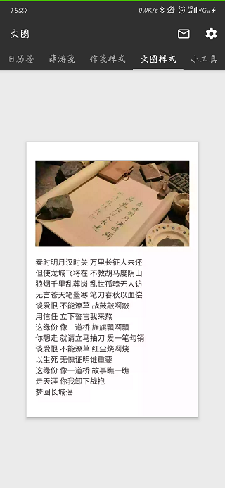 -支持四种主要图文样式:薛涛笺、信笺、方格图片、文图样式;