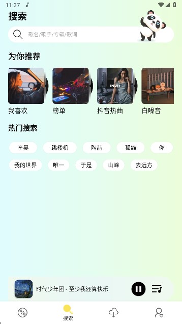 熊猫音乐是一款主打高音质播放的音乐播放器,支持FLAC、APE、WAV等多种无损格式,能精准还原每首歌的细节;平台曲库资源丰富多元,流行、电子、爵士、古典等各类风格应有尽有,轻松满足不同音乐喜好;还能依据用户的播放习惯智能推荐歌曲,越用越贴合个人口味,为用户带来纯粹、安心的听歌体验,是音乐爱好者的贴心选择。