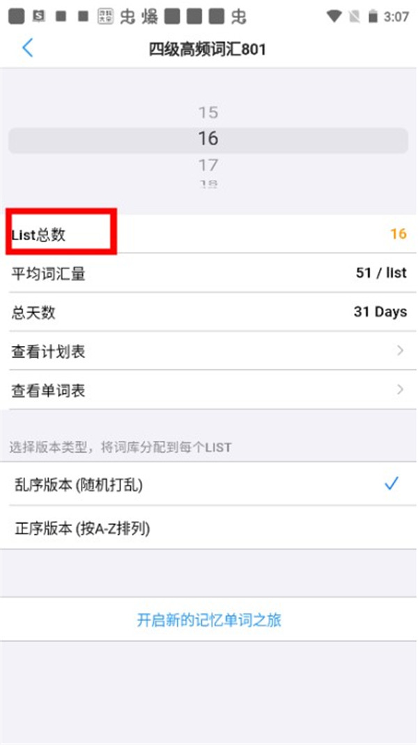 可以按照List的数量对词库进行平均划分,生成学习计划时能选择乱序或正序两种方式,以此科学规划每日需要学习的词汇量。