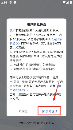 1、打开应用并同意隐私协议条款。