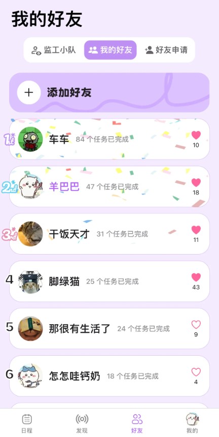 6、在好友列表中,用户可主动添加更多联系人,拓展监督网络,共同提升执行力与目标实现的效率。