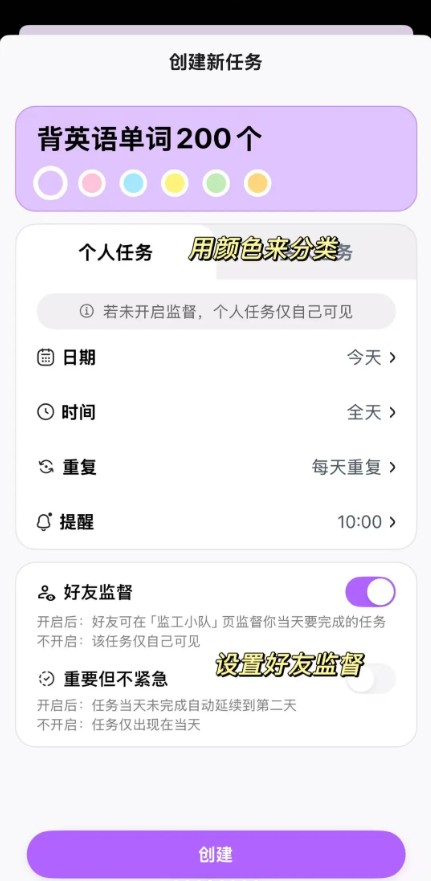 支持个性化创建任务,并能根据自己的习惯自由设置任务的背景。