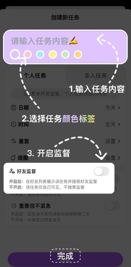 1、进入DuoDo后,用户可立即新建任务,并根据实际需求设置时间节点、提醒频率及周期参数等内容。