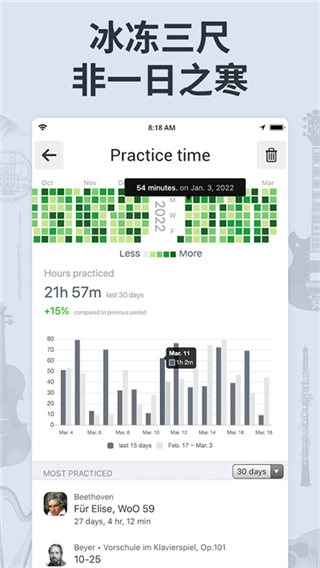 音色方面,该软件提供18种不同的音色选择,方便用户随时进行练习。