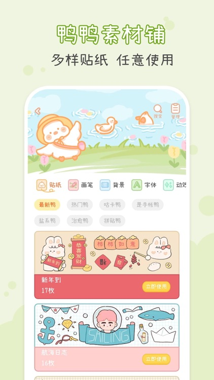 爱鸭手帐是一款风格清新可爱、功能丰富的手账与日记记录工具,专为热爱手账创作、日常记事和个性表达的用户量身打造。它以“手帐鸭”IP形象为核心特色,整体采用少女系UI设计风格,用户可以借助丰富的模板、画笔、贴纸和背景素材自由创作记录,沉浸在治愈温馨的手账氛围中。软件还提供密码加密隐私保护、重要日期提醒、每日打卡等实用功能,并设有专属素材商城,持续更新高质量的内容资源。无论是记录情绪、规划学习,还是管理生活账单、留存节日纪念,都能在这里找到适配的记录方式。