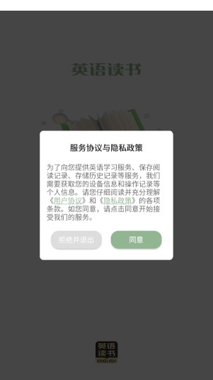 1、在本站下载并安装英语看书应用,打开软件后,阅读相关协议并点击【同意】按钮,即可继续使用英语看书的各项功能。